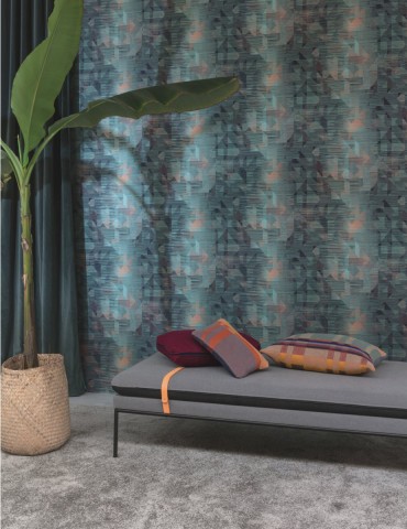 Khroma Wild Wild Striped pattern textured wallpaper with a matte look with a textile flair. Hanging on the wall, this adds a cozy feel to the interior.